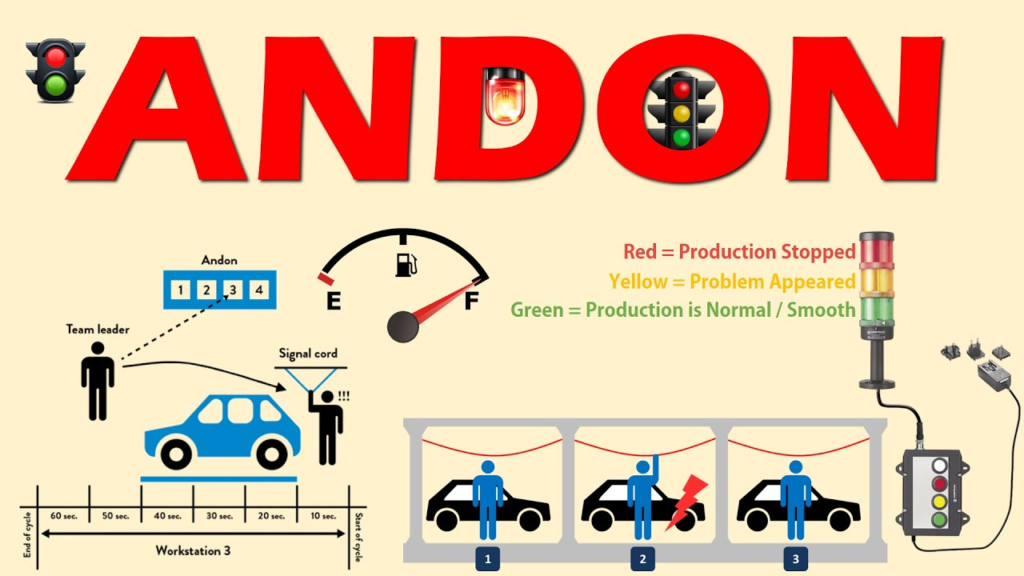 Андон (с японского — Лампа, более правильное слово Абажур) — визуальная система оповещения о возникающих проблемах в бережливом производстве.