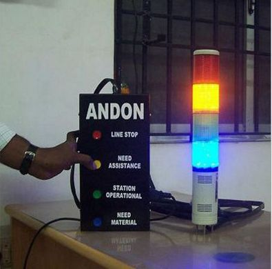 У нас андон — часто заменяют словом светофор, и могут добавить дополнительные цвета.